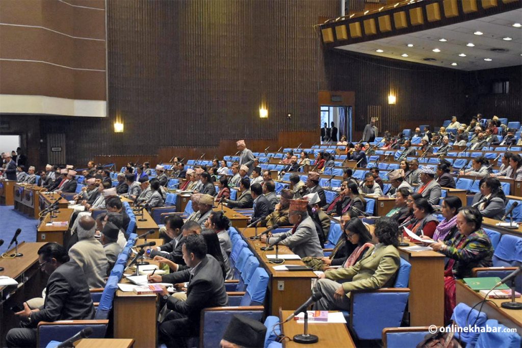 Falgun 24, Kathmandu — With the change in the ruling coalition, the seating arrangement of political parties in the House of Representatives has also changed. The Nepali Congress has moved to the main opposition bench, while the CPN-UML has moved to the ruling side bench.