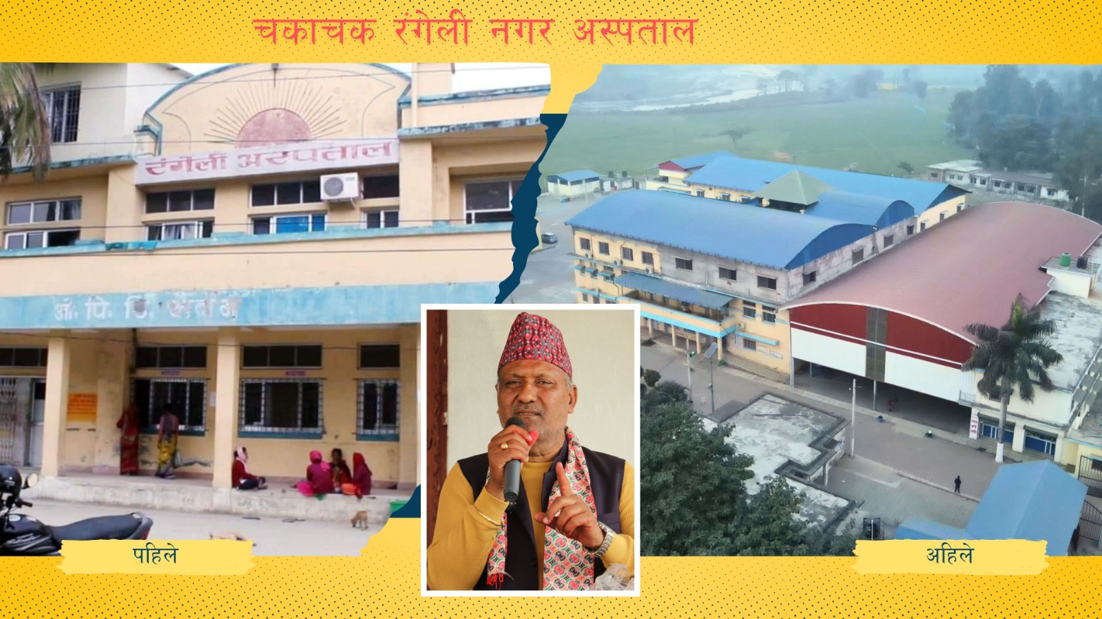 रंगेली । केही वर्षअघिसम्म लथालिंग, अस्तव्यस्त र जीर्ण अवस्थामा रहेको रंगेली अस्पताल नगर अस्पतालका रूपमा रूपान्तरण भएपछि निजी अस्पतालभन्दा अब्बल बनेको छ । निजी अस्पतालभन्दा सुव्यवस्थित नगर अस्पताल एक पटक होइन, तीन–तीन पटक देशकै सर्वोत्कृष्ट अस्पतालका रूपमा घोषित् भएको छ ।