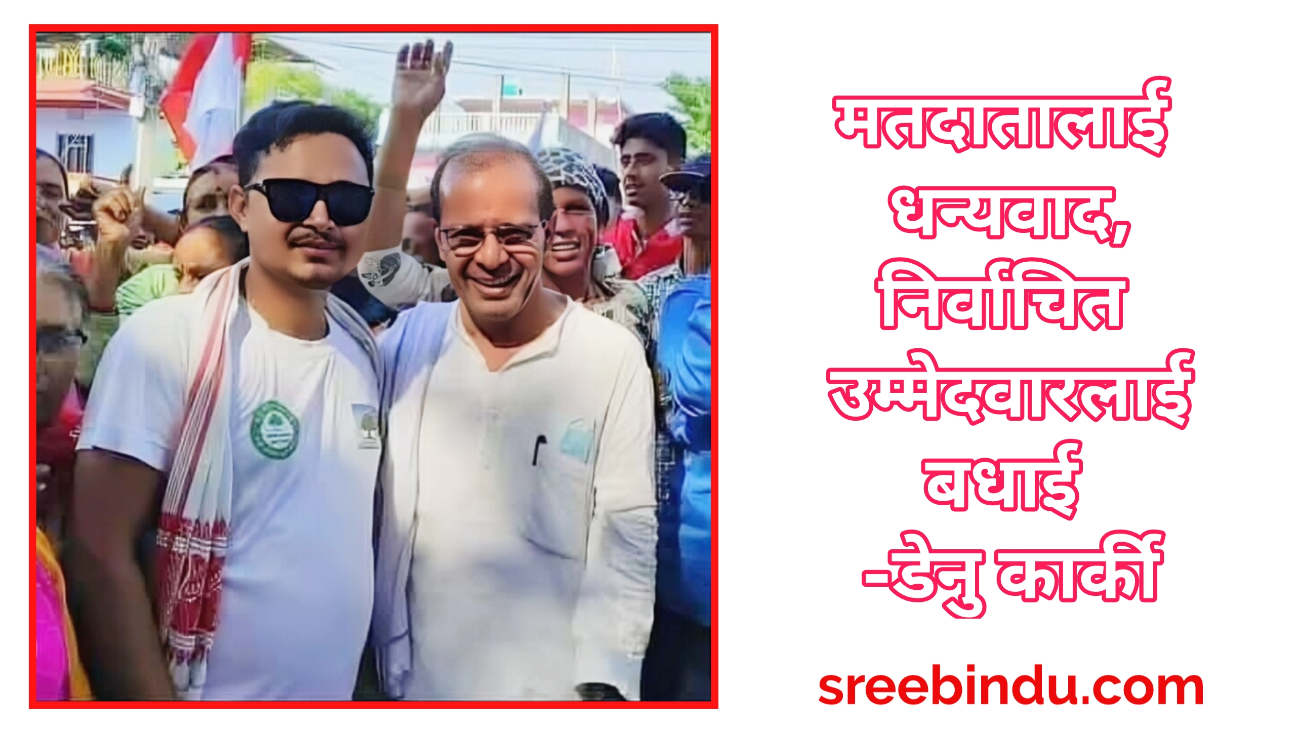 कानेपोखरी, २७ फाल्गुन । मोरङ क्षेत्र नं. २ अन्तर्गत कानेपोखरी गाउँपालिका–२ का नेपाली कांग्रेस प्रचारप्रसार समिति सचिव डेनु कार्कीले निर्वाचनमा नेपाली कांग्रेसलाई विश्वास गर्दै मतदान गर्ने सम्पूर्ण मतदाताप्रति धन्यवाद ज्ञापन गरेका छन्।